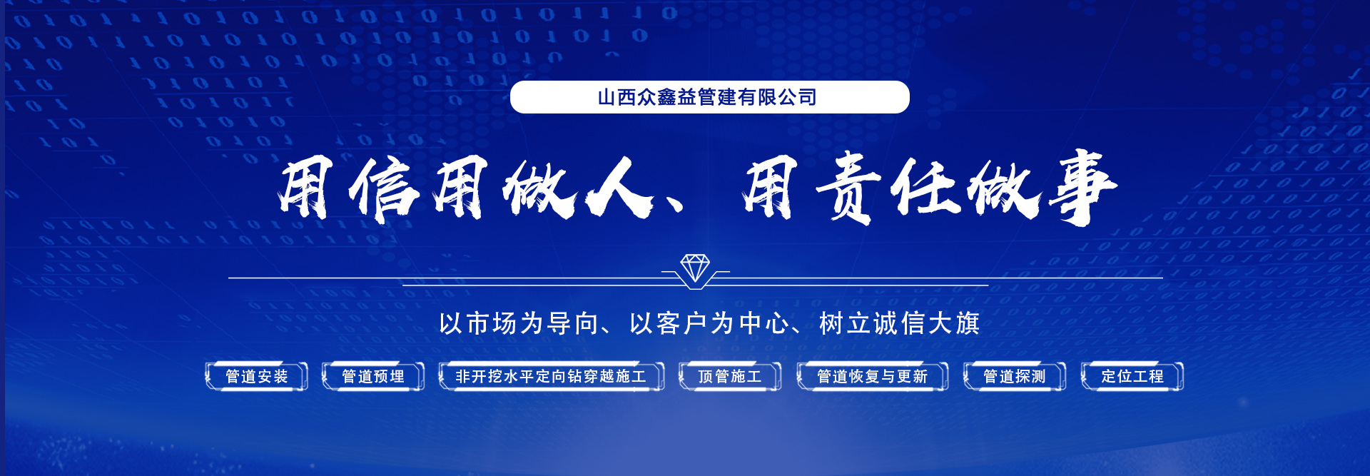 山西眾鑫益管建有限公司成立于2013年8月,注冊資金5000萬元人民幣。是一家主要致力于管道安裝、管道預埋,非開挖水平定向鉆進穿越施工,管道修復與更新、管道探測、管道定位,建筑工程機械與設備租賃的企業。